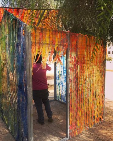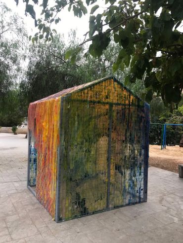 Tapping into themes of play, appropriation, and do-it-yourself, Sabri constructs Playhouse using cheap and found materials. Built from a simple wooden skeleton and metal mesh walls sourced from everyday DIY shops, the structure is enclosed with recycled plastic bags and discarded materials. The work reimagines the familiar childhood playhouse—an object of collective memory—while inviting public participation and interaction. Through its simplicity and accessibility, Playhouse opens a dialogue on sustainability, creativity, and community-led creation. It advocates for the importance of play and self-initiated forms of entertainment, especially in contexts where institutional or government-led cultural interventions are limited.