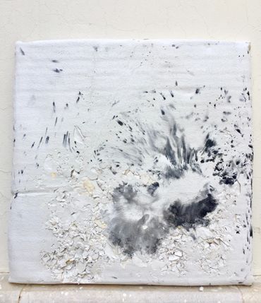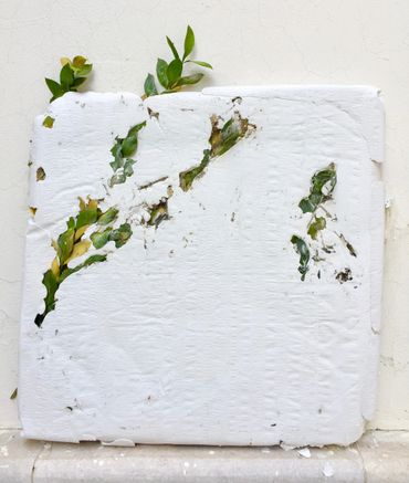 Pompeii (2019) exhibited in Darat Al Funun,is a series of sculptural works made from everyday materials—paint fragments, plants, metal mesh—encased in cement. Like the ancient city that inspired it, the series attempts to freeze moments in time, preserving traces of the ordinary. As the materials fuse together, they appear suspended, yet remain alive and reactive: plants wilt, metal rusts, and paint bleeds. This natural decay reveals the impossibility of true preservation and the futility of resisting change. Pompeii becomes a meditation on impermanence, memory, and the passage of time—an acknowledgment that even in stillness, transformation continues to unfold.
